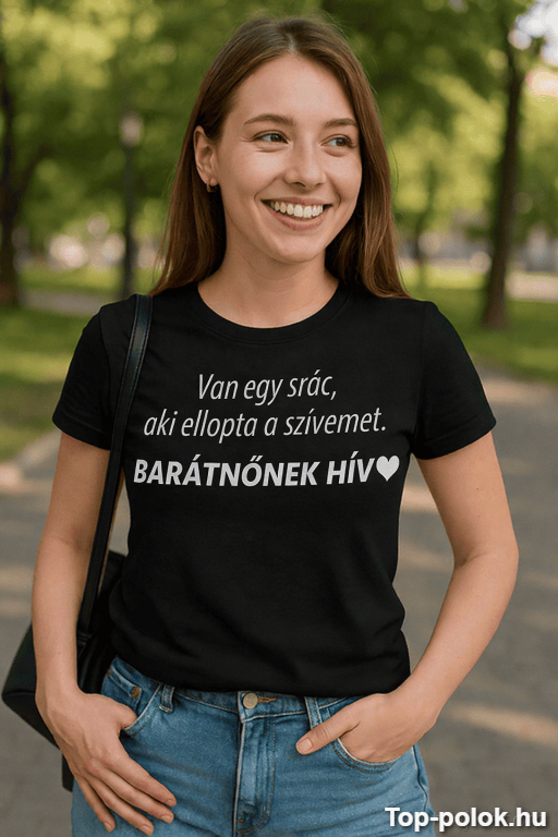 Ha olyan vicces női póló ajándék barátnő részére kell, ami egyszerre cuki és pimaszul szellemes, ez telitalálat. A szöveg romantikusan indít, majd odacsap a poénnal – pont úgy, ahogy egy jó belsős vicc működik. 😉
