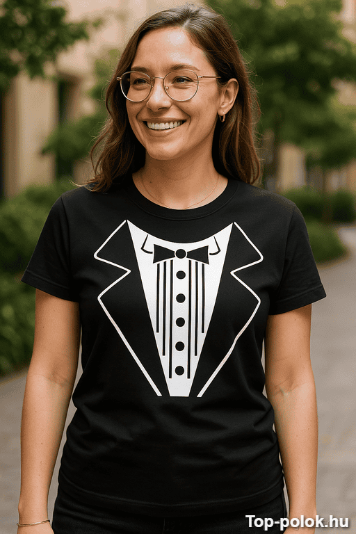 Ez a Vicces szmoking póló arra született, hogy belépj a buliba, és már a küszöbnél meglegyen a nevetés. Olyan, mintha szmokingban érkeznél — csak sokkal lazábban, és sokkal több poénnal. 😎